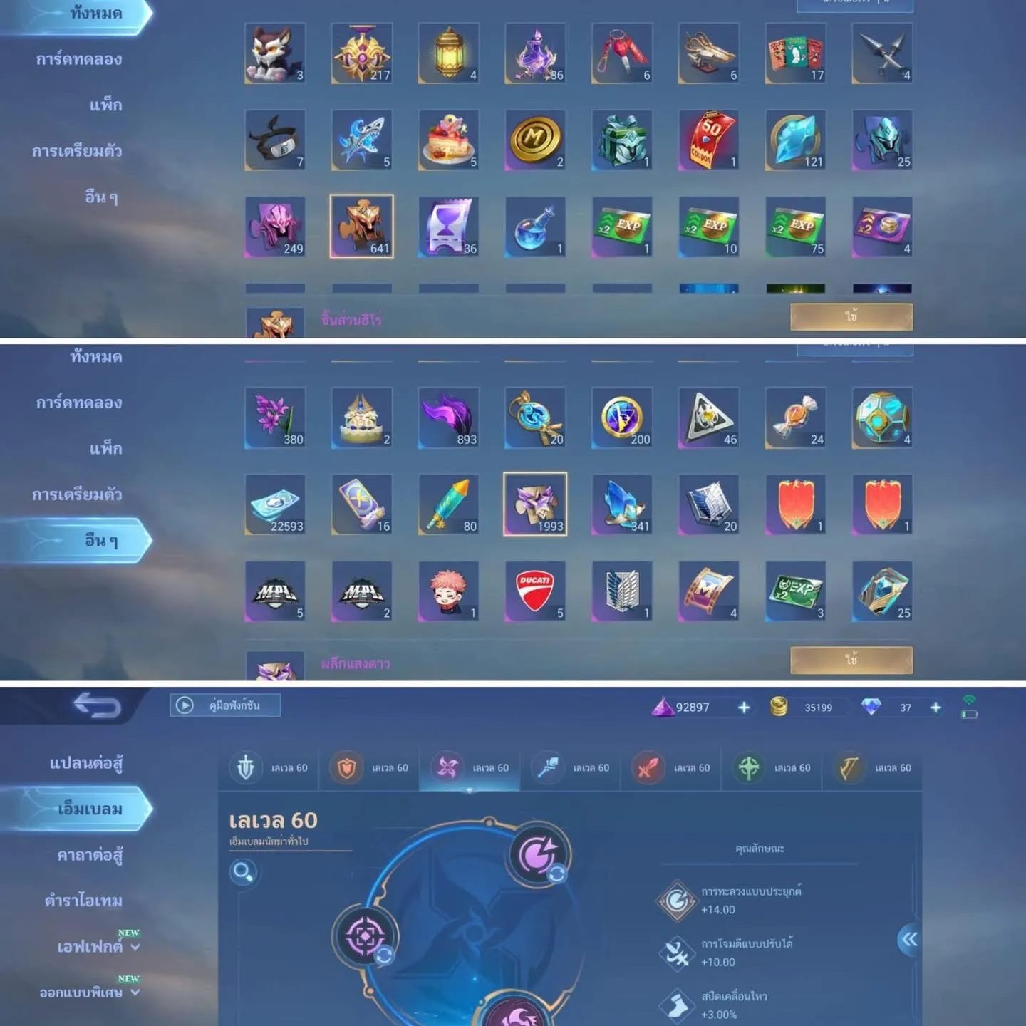 Hero 131 /Skin 371 เปลี่ยนเมลได้เลย ไม่ติดโซเซียล ไอดีสะอาด เปลี่ยนรหัสได้เลย เอ็มเบลมเลเวล 60 ตัน ครับ