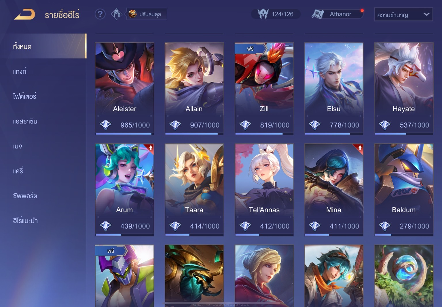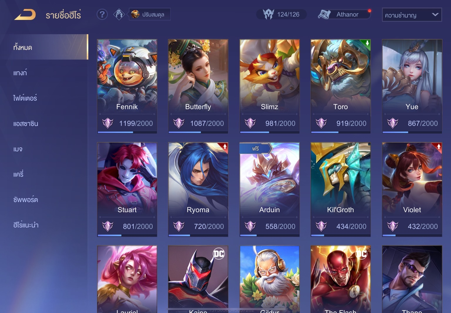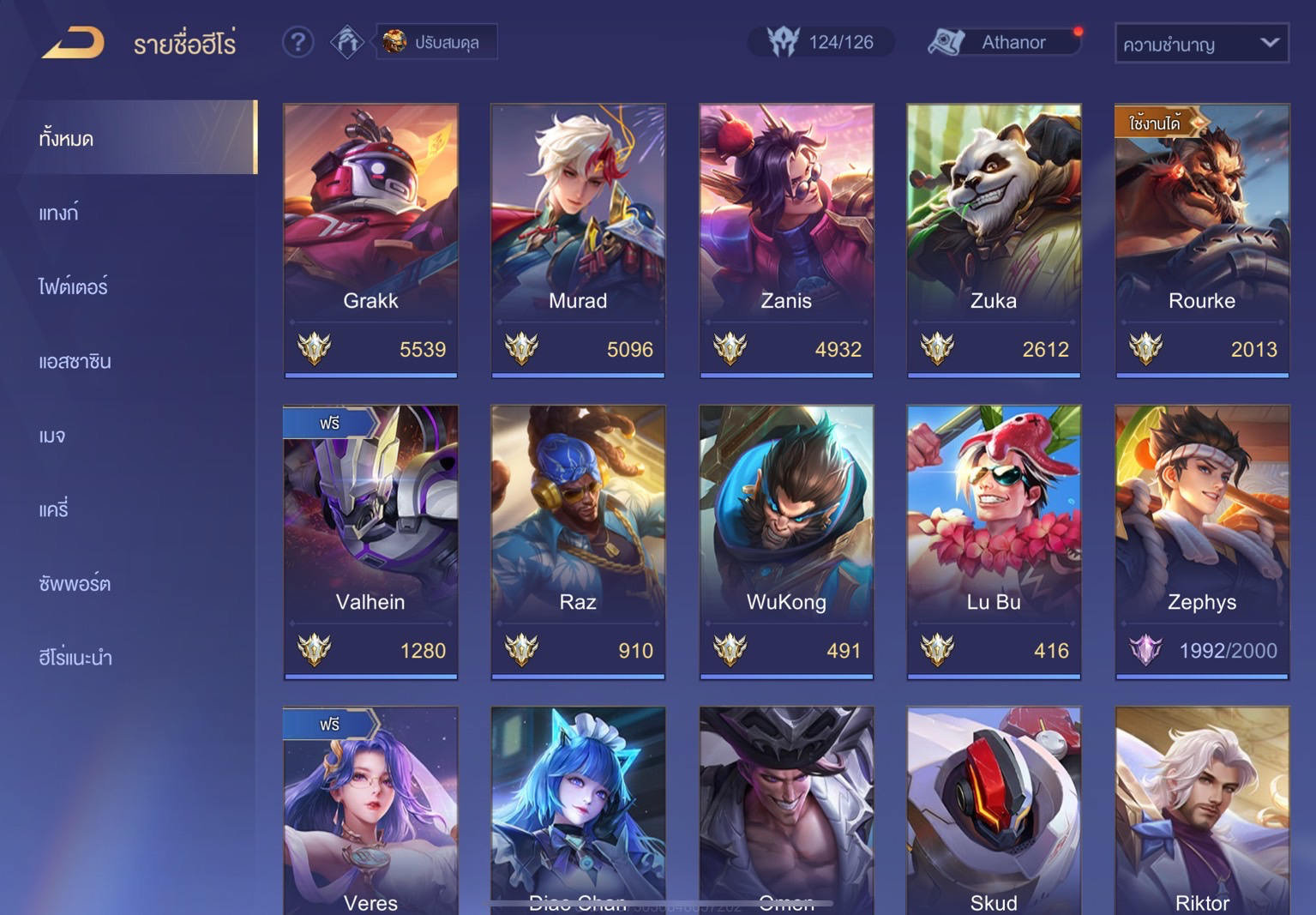 ฮีโร่เยอะ เล่นได้ครบสาย สกินสวยๆหลายตัว เพิ่มเติมได้ ราคาต่อรองกันได้