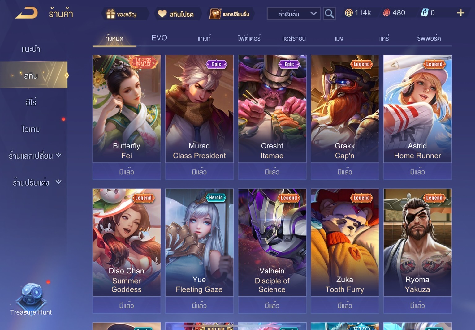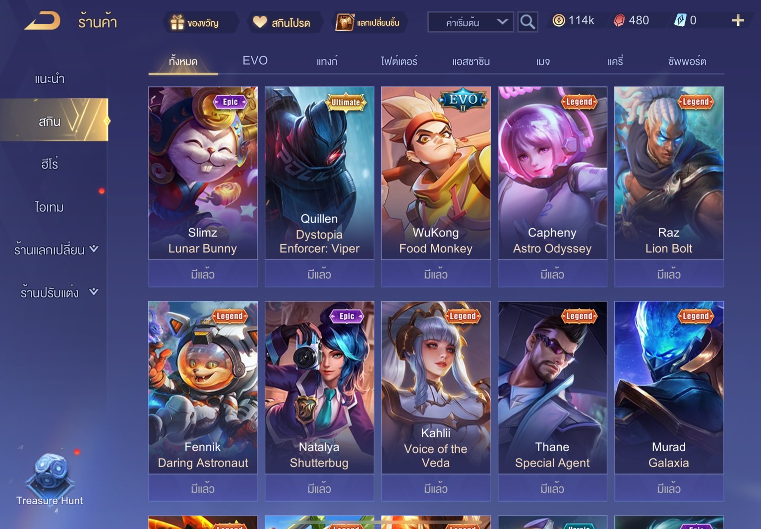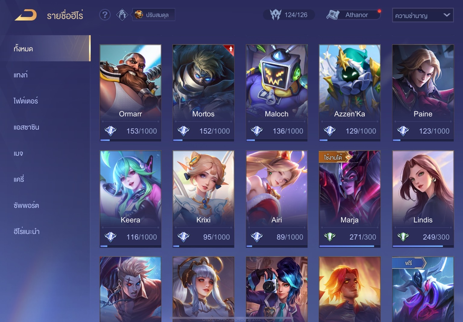ฮีโร่เยอะ เล่นได้ครบสาย สกินสวยๆหลายตัว เพิ่มเติมได้ ราคาต่อรองกันได้